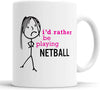 Enjoy your favorite drink in style with the Ladies I'd Rather Be Playing Netball Mug. Designed for netball enthusiasts, this mug combines practicality with personality, making it an ideal choice for daily use at home or the office. Its sturdy construction ensures durability, while the clear printed message reflects your passion for the game. Perfect as a gift or personal treat, this mug celebrates your love for netball every time you take a sip.