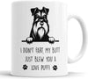 This Miniature Schnauzer-themed mug features a playful and humorous phrase, perfect for dog lovers with a sense of humor. Crafted for everyday use, it offers a comfortable grip and durable design, making it ideal for enjoying your favourite hot beverages. Its unique message adds a fun, light-hearted touch to your morning routine or makes a charming gift for Schnauzer enthusiasts.