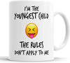 I’m the youngest child emoji – A fun mug for the youngest sibling, complete with a smiley emoji.