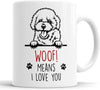 For fans of the adorable Bichon Frise, this “Woof” design makes a charming gift.